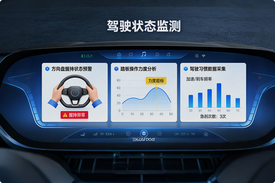 构建触控操作与驾驶状态的智能联动机制,触控响应即时精准,大幅减少驾驶员低头操作时长,降低分心风险;同时实时捕捉驾驶过程中的状态变化,提前预警不规范操作,为自动驾驶与人工驾驶双重场景提供安全保障,契合整车功能安全升级需求。