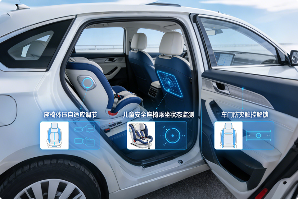 支持多元化操作识别,敲击、滑动、按压、承载等动作,融合个性化设置适配不同驾乘人员使用习惯;通过智能感知实现操作反馈精准匹配,联动座椅、空调等系统完成场景化自适应调节,从触控便捷性到乘坐舒适性全方位提升用户体验。